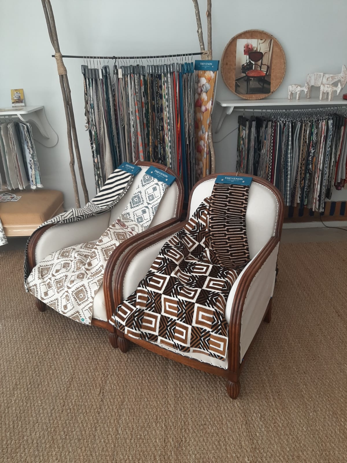 Mes sièges coup de cœur → des pièces uniques chinées avec soin, mariant belles structures et étoffes originales.